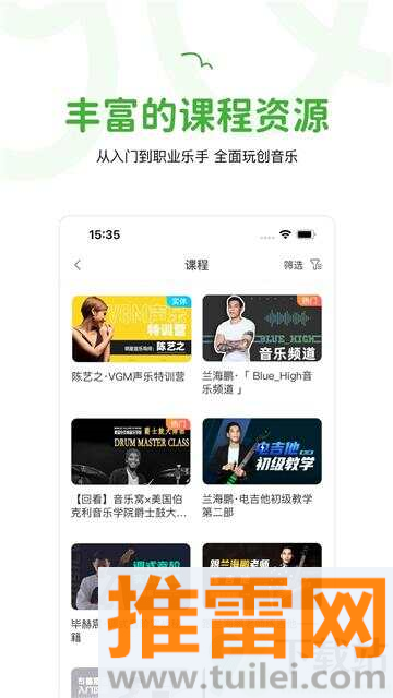2、进入教程页面后,里面涵盖了吉他、键盘、架子鼓、声乐等多个常见乐器的学习引导,分类清晰,适合不同教学方向的老师查看参考。
