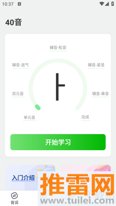 5、在发音练习区域,能逐个听韩语里的音标发音,还能跟读对比,纠正自己的口音。
