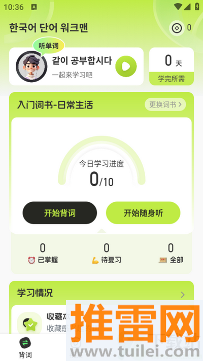 3、挑一本适合自己当前水平的词书选上,就可以直接开始今天的单词学习任务了。