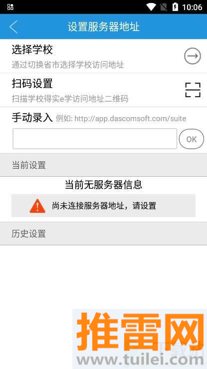 2、打开软件后第一件事是选学校,如果列表里没有,就按学校给的地址手动填一下服务器信息,这步不能错。
