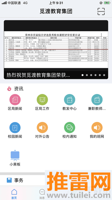 学校发布的各类通知公告都能第一时间推送到用户手机端。