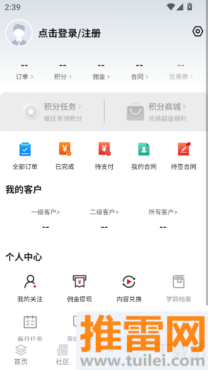 2、打开软件后进入首页,找到底部导航栏里的“我的”选项,点进去会看到登录注册的入口,新用户必须先完成验证步骤。