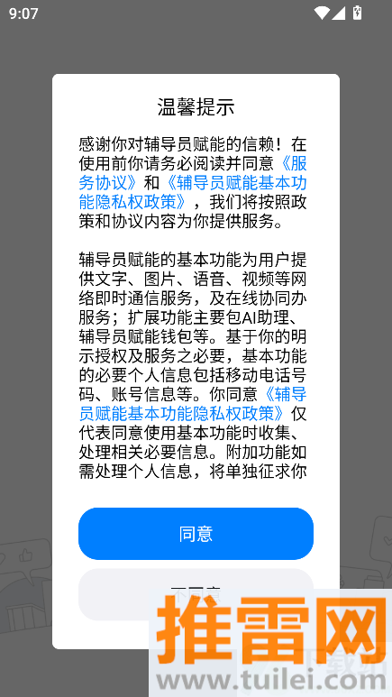3、首次登录需阅读并同意用户协议与隐私政策,勾选确认后方可继续操作进入主界面。