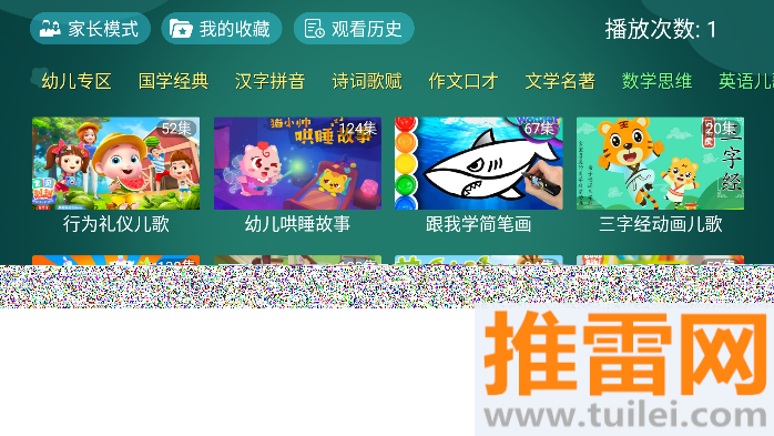 5、安装完成后打开软件,进入首页左上角切换按钮,可根据需要选择家长或儿童观看模式。