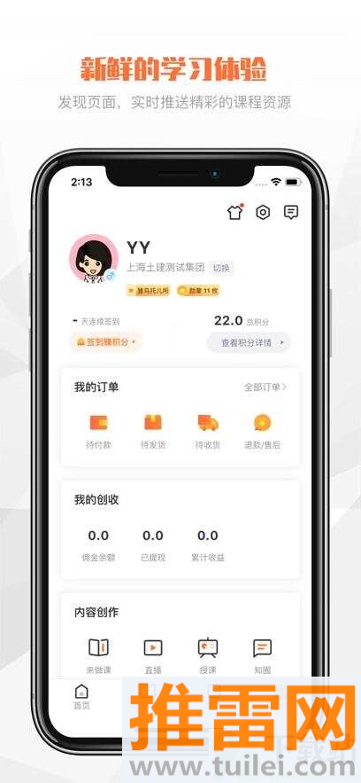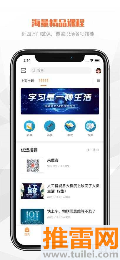 3、登录后进入首页的学习中心栏目,里面会列出推荐课程和正在进行的学习任务,点击即可查看详情。