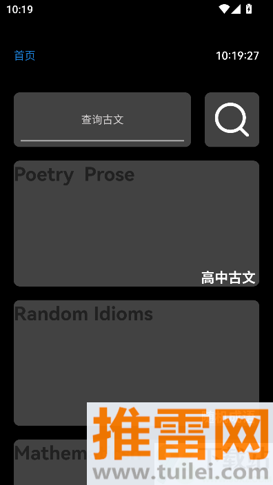 3、进首页后能看到语文课本里的所有古诗文标题,按年级和学期分类排列。