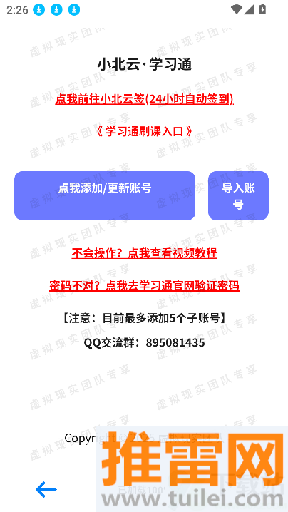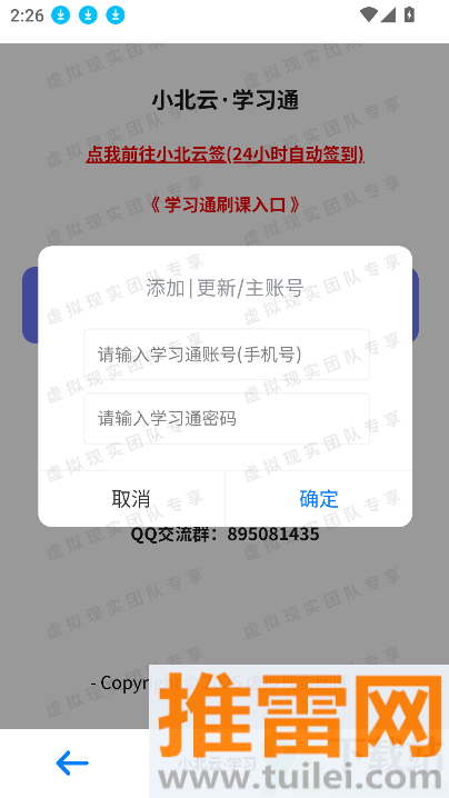 3、进首页后点“添加账号”,把你在学习通用的登录信息准确填进去,别手滑输错,不然同步不了课程数据。