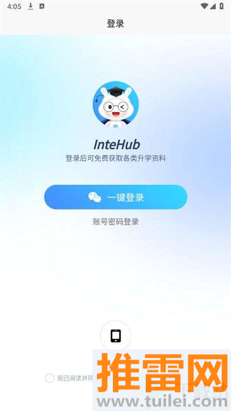 1、先到正规应用市场或官网把intehub软件下载安装到手机上,安装完成后点击图标打开应用程序进入主界面。