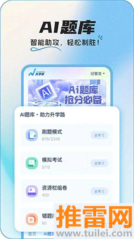 根据你平时做题的表现自动调整推荐内容,错得多的类型会多出几道相似题帮你巩固,练得越多,推得越准,不用自己盲目找题海战术。