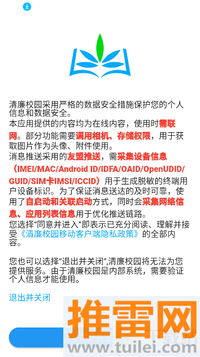 2、安装完成后打开APP,会弹出使用协议页面,仔细看完条款后点同意,才能继续进入主界面进行下一步操作。