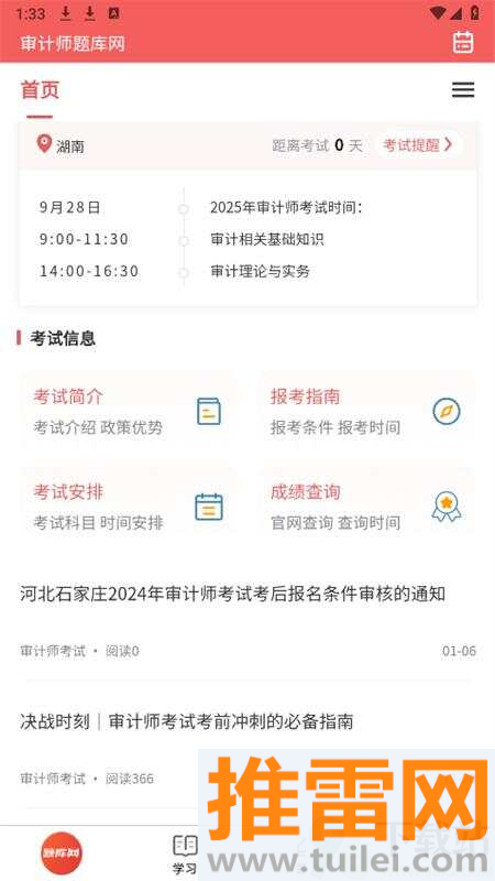 4、登录成功后可在首页浏览最新考试资讯,也能直接进入题库选择要做哪类练习。