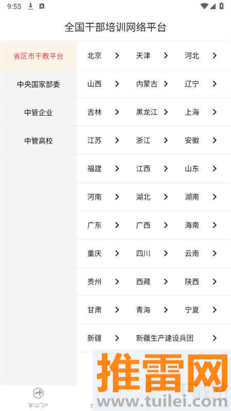 4、登录成功后选择自己所在的省份区域,系统会自动跳转到对应的地方学习平台。