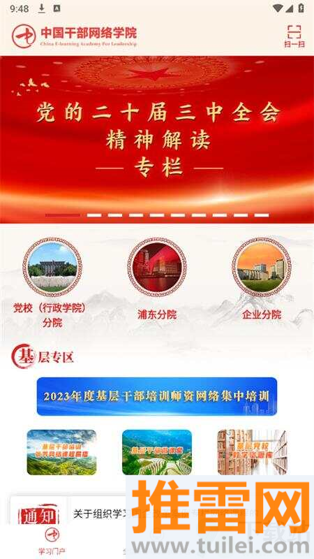 1、先在正规渠道下载安装中网院干部网络学院app,安装完成后打开应用进入主界面。