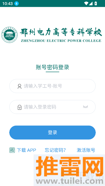 2、安装完成后打开软件,在登录页面输入学校分配的个人账号和初始密码,核对无误后点击下方登录按钮进入主页。