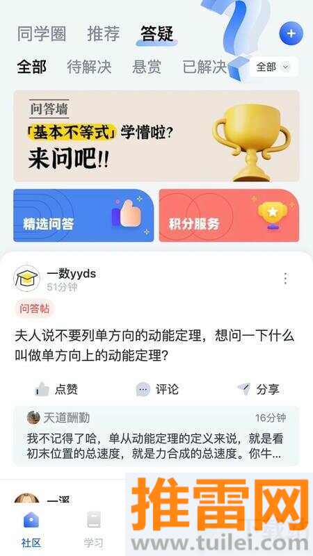 全国各地学生在这里分享解题技巧,遇到难题发个帖子,很快就有学霸给出详细解答思路。