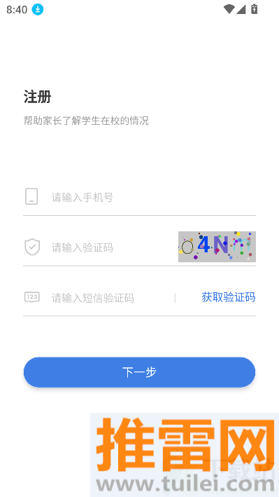 2、打开app后选择是否已有账号,新用户直接点注册按钮进入下一步,老用户输入手机号验证后即可登录。
