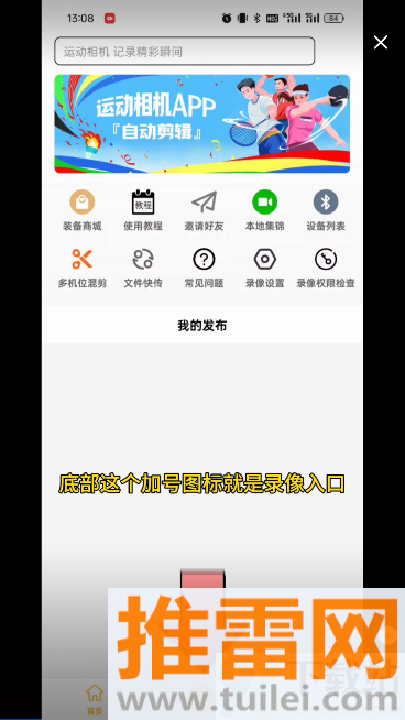 1、打开好球剪辑app后,先检查手机和配件按钮是不是连上了,确认无误再点底部的红色录制按钮开始干活。
