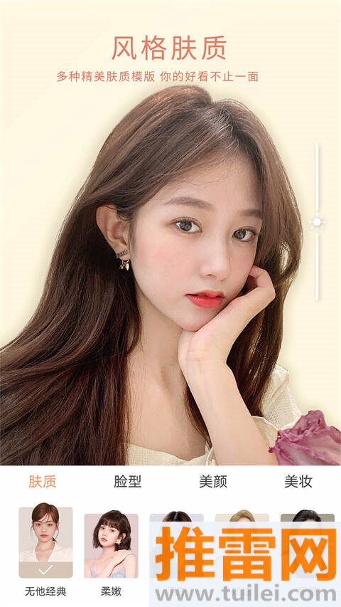 提供丰富的眉形、睫毛、眼线、口红、腮红等美妆选择,即便素颜也能拍出大片效果,通过实时预览功能,自由切换妆容,变身美妆达人。