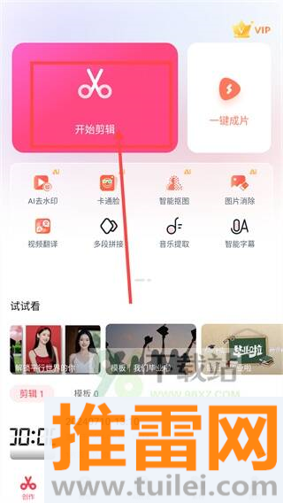 1、打开快剪辑APP,在软件首页,你会看到很多功能选项,这里我们选择“开始剪辑”。