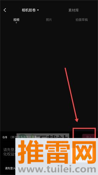 2、接下来会进入上传素材的界面,在这里,挑选你要编辑的视频,选中后点击“导入”按钮。