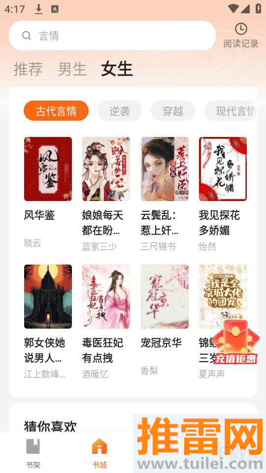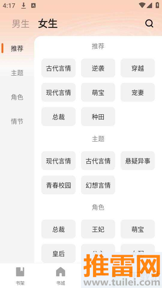 2、刚进去会提示选兴趣类型,挑几个你爱看的题材,比如喜欢霸道总裁就勾言情类,方便系统推荐。