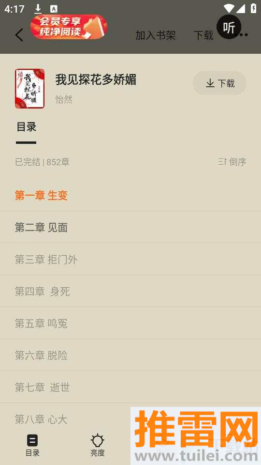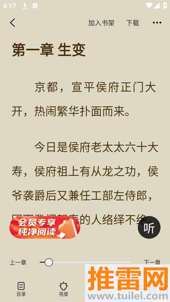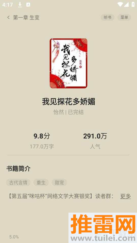 5、菜单里有个“听”按钮,点击就能开启语音朗读模式,解放双眼躺着也能听故事。