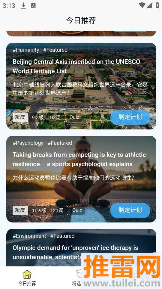 答:每篇文章读完后都会配套几道理解题,包含主旨、细节、推理等题型,做完立刻出结果,还能看解析,帮助你检验是否真正读懂了。