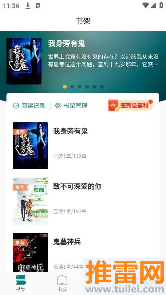 5、喜欢的书可以加入书架,以后从书架入口进来看更方便,还能看到有没有更新章节提示。
