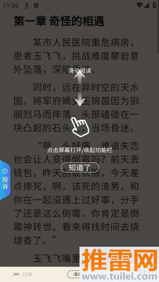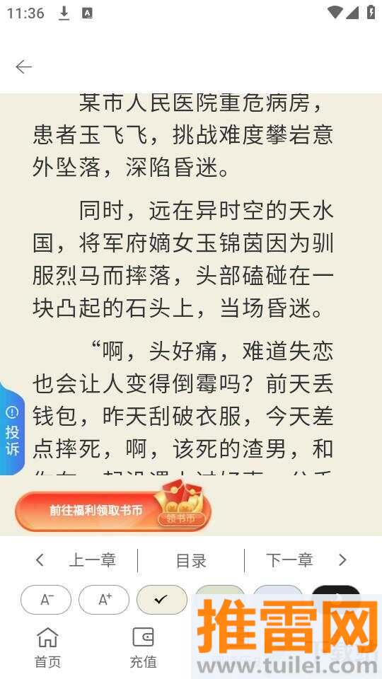 4、阅读过程中手指点屏幕中间会弹出菜单,可以调字体大小、换背景颜色或者切换日间夜间模式。