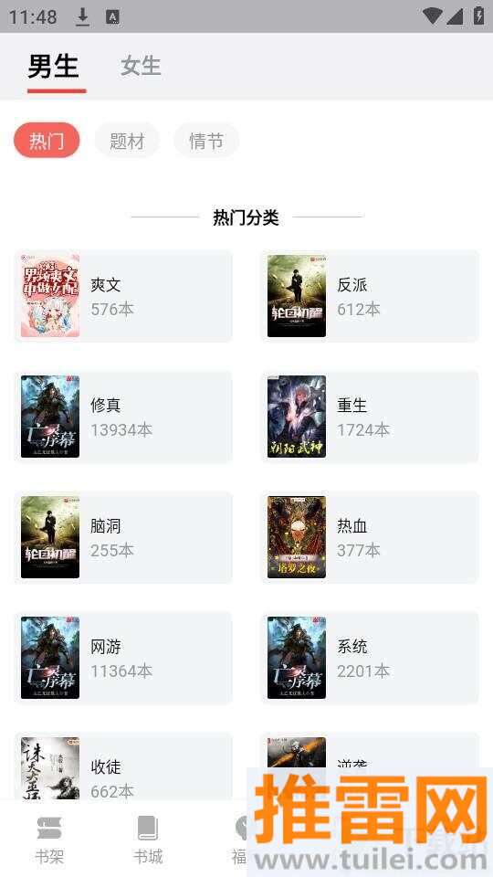 2、首次进入会问你喜欢什么类型的小说,勾选几个感兴趣的类别,系统后面推的内容就会更合你胃口。