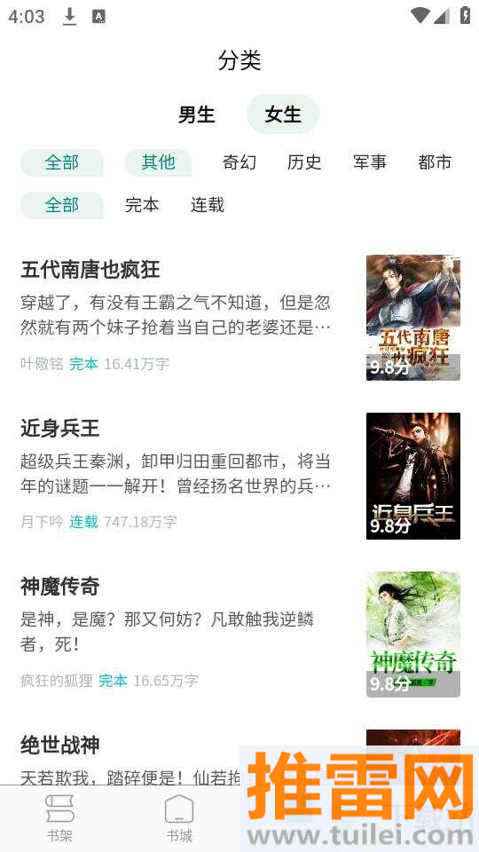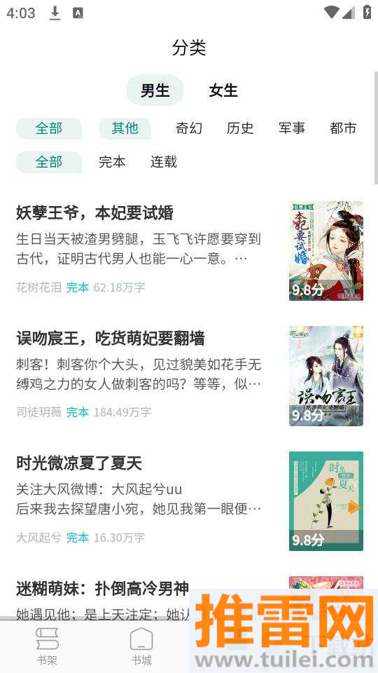 3、在书城页面可以通过分类导航浏览不同题材的作品,比如点击“言情”或“玄幻”就能看到对应榜单。