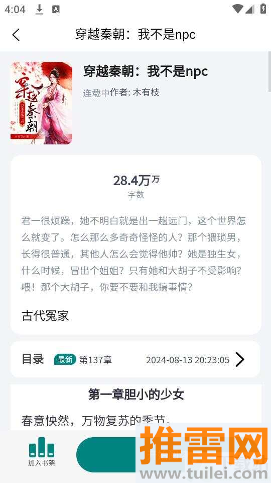 5、喜欢的小说可以直接加入书架,后续更新会有提醒,方便你随时跟进最新章节内容。