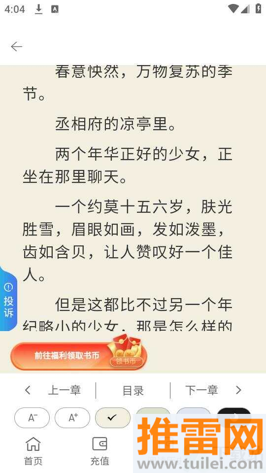 4、打开任意一本小说后可以调整字体大小、背景颜色和翻页方式,设置成自己看着最舒服的模式。