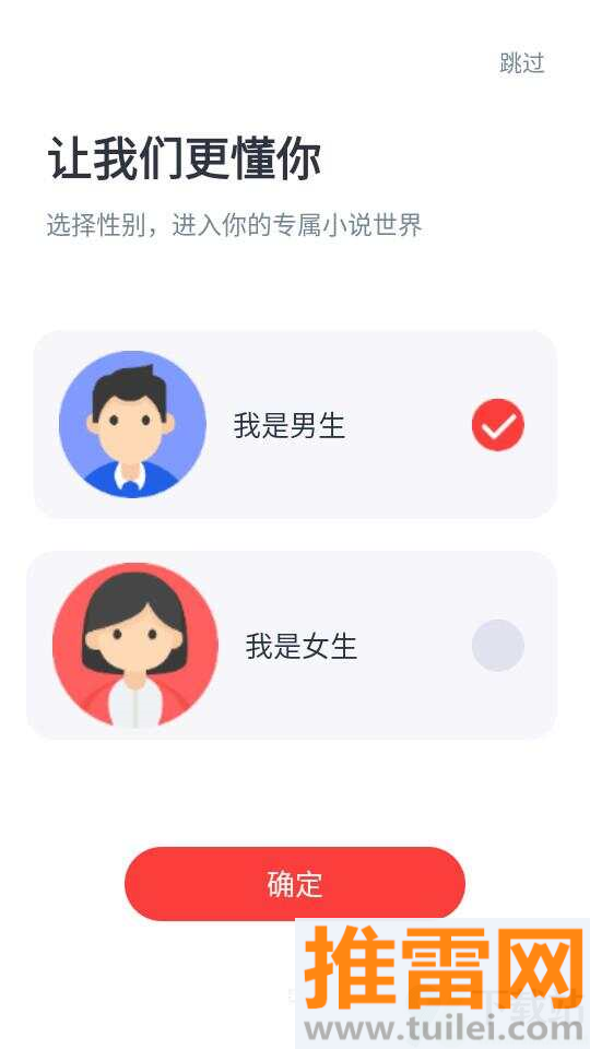 2、首次进入会问你想看什么类型的小说,可以勾几个感兴趣的类别,也能直接点跳过省事。