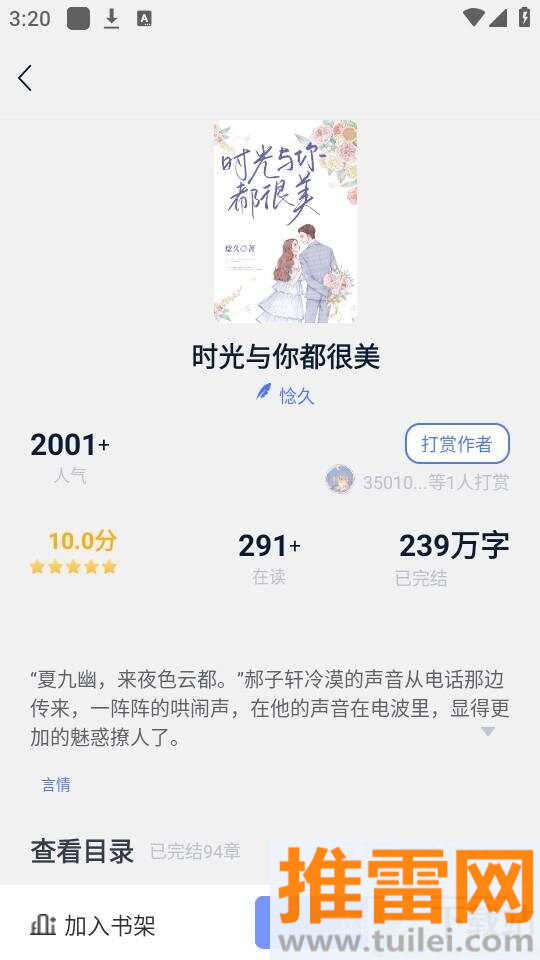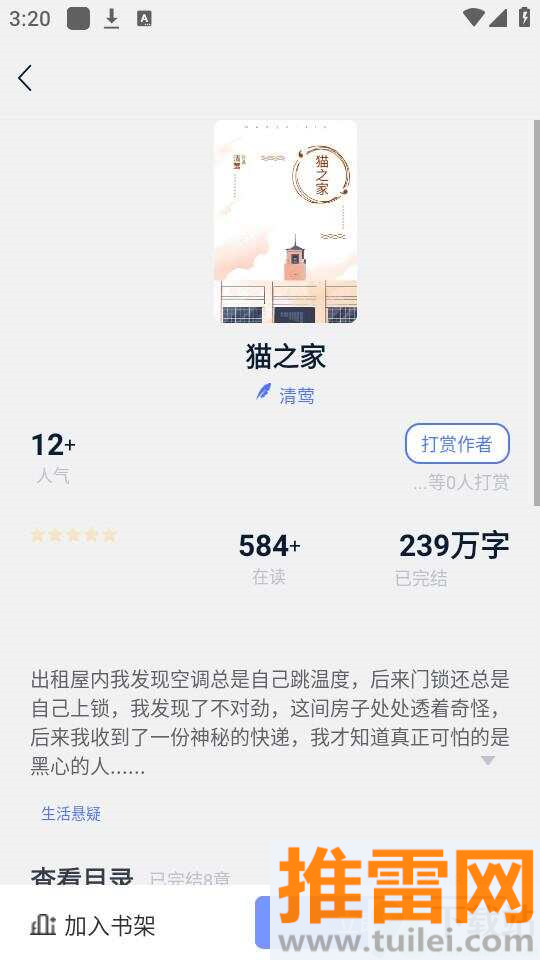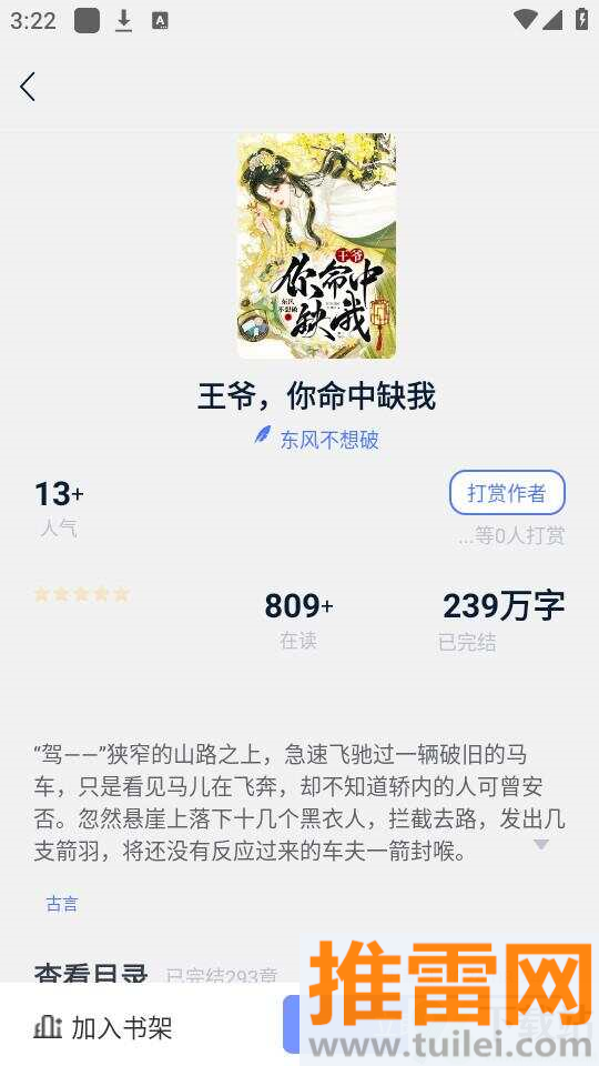 能把自己喜欢的小说一键加入书架,分类整理随心调整,找书不费劲,打开就能接着看。