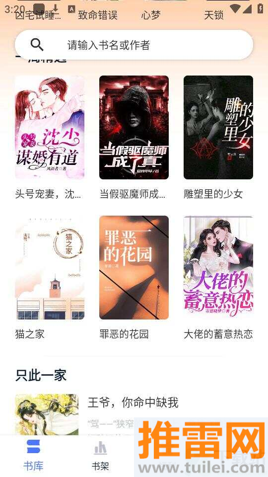4、注册成功后返回主页,可以通过搜索框输入书名或作者,快速定位想要阅读的内容。