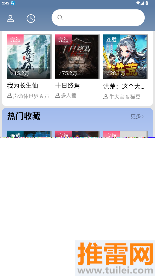 2、在首页顶部的搜索框输入你想听的书名或者作者名字,系统会立刻列出相关结果供你选择。