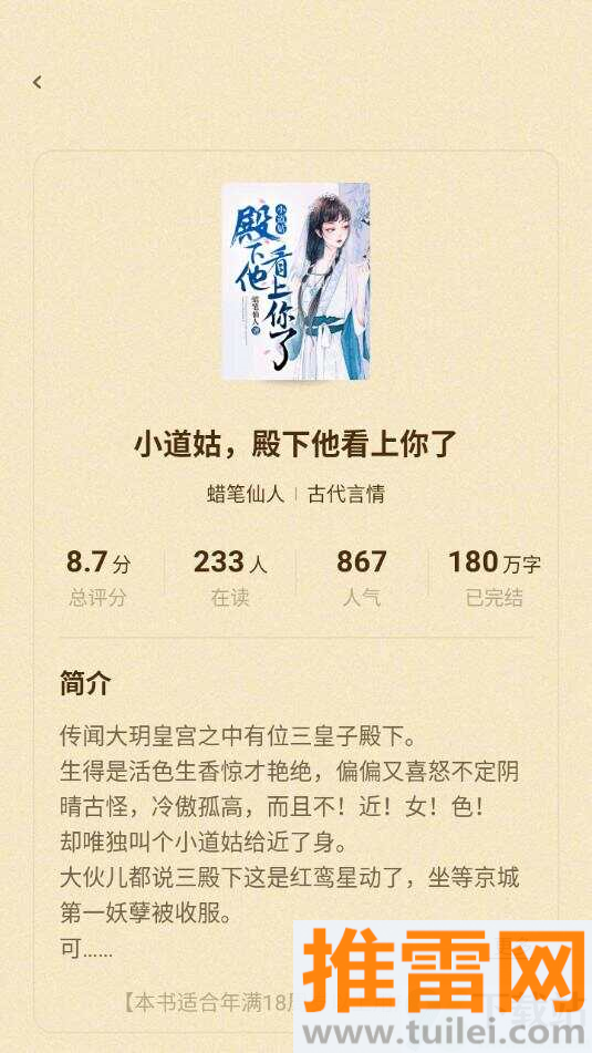 答:可以进“我的”页面点开“阅读偏好”,勾选你喜欢的类别比如言情或玄幻,保存后推荐内容就会更合你胃口。