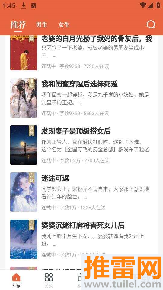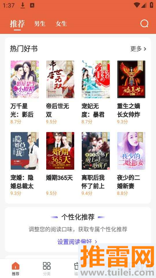 2、进入首页后直接在推荐位或榜单里点开一本感兴趣的小说就能开始阅读,不需要注册登录。