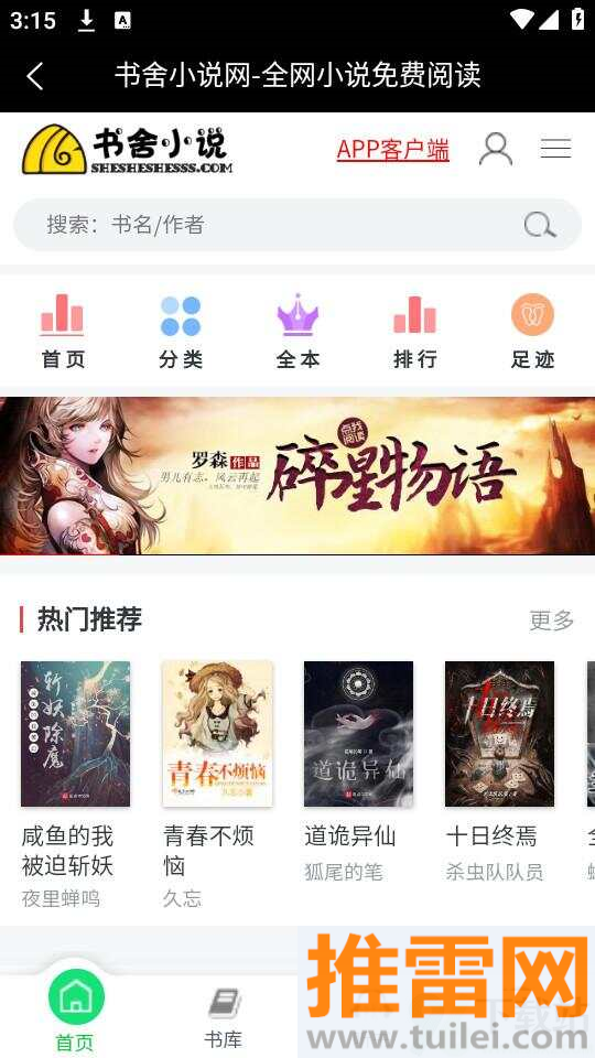 1、下载安装书舍APP后,打开应用,先在首页逛一圈看看今日推荐和热门榜单有哪些新书上线。