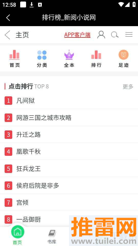 2、如果不知道看啥,可以点进分类页面,看看排行榜上的热门书籍,很多都是别人已经追完推荐的好故事。