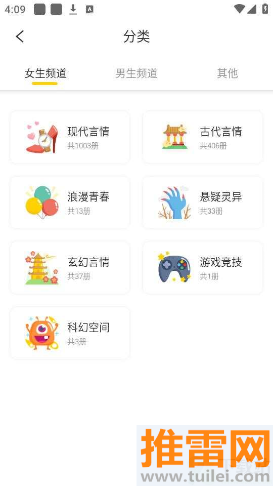 2、在分类页面中可以按题材筛选,比如选“女频”再挑“甜宠文”,就能精准找到符合口味的小说。