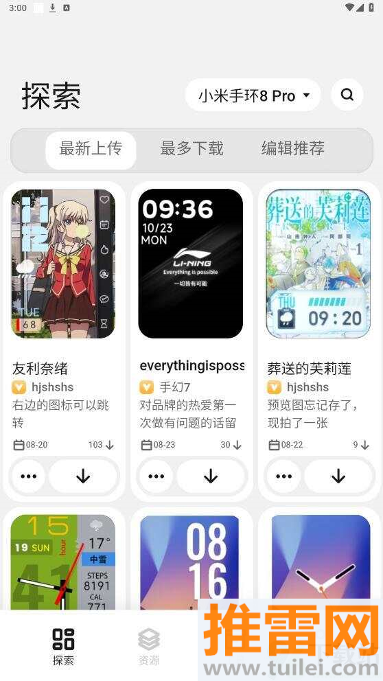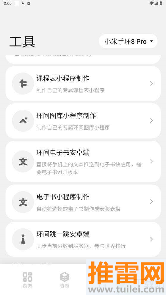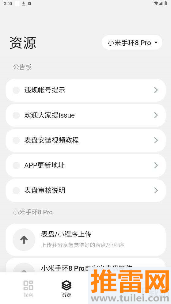 2、打开表盘自定义app后,在界面右上角找到设置项,点进去选择自己的手环型号,必须选对小米8Pro才能正常连接。