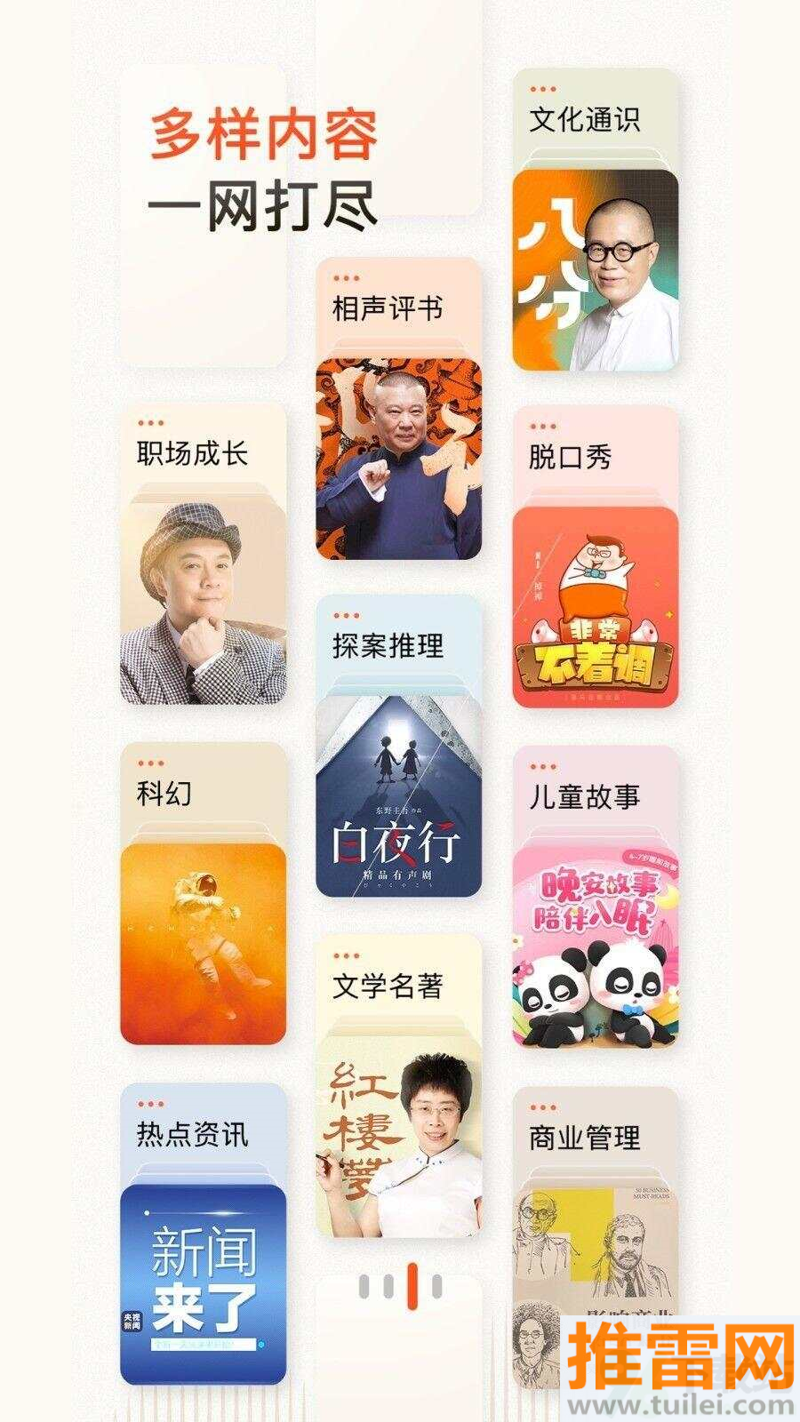从郭德纲相声到华尔街日报解读,从胎教音乐到老年人健康讲座,每个生命阶段都能找到契合的声音陪伴。