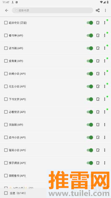 3、进入书源管理后,右上角有三个小点组成的菜单按钮,轻触即可展开操作选项。