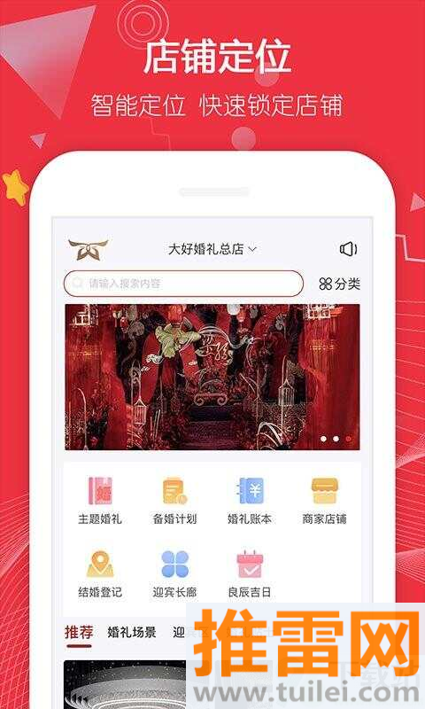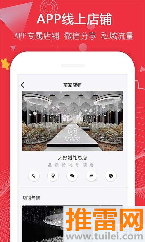 1、首创3D婚礼场景预览功能,在手机端就能360度查看婚礼现场效果,随时调整布置方案。