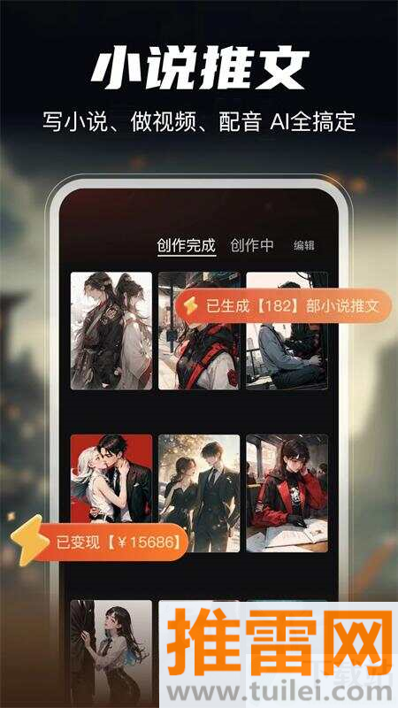 3、首页上功能分类排得挺清楚,找你目前要用的那一项直接点进去,比如想做小说推文就点对应按钮别跑偏了。