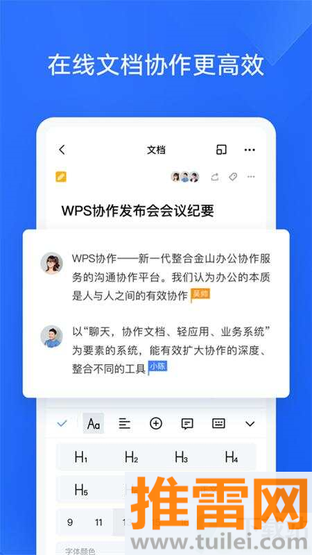 普通WPS主要是用来写文档、做表格的单机工具,而WPS协作用于团队合作,集成了聊天、日程、会议、权限管理等功能,更适合多人一起办公。