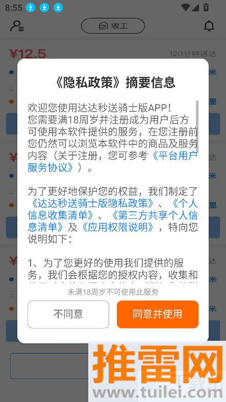2、打开APP后按提示点同意相关服务条款,允许必要的权限,比如定位和通知,这样接单才不会掉链子,系统也能正常派活。