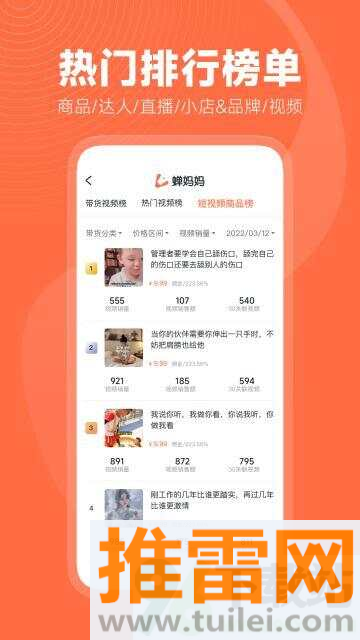5、实时更新的带货排行榜单,为用户提供最新市场动态和商业机会。